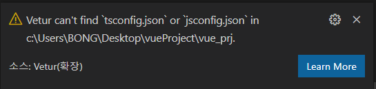tsconfig.json파일과, jsconfig.json파일을 찾을 수 없다는 것. 해결방법은 root 경로에 해당 파일 2개를 추가해주면 된다.