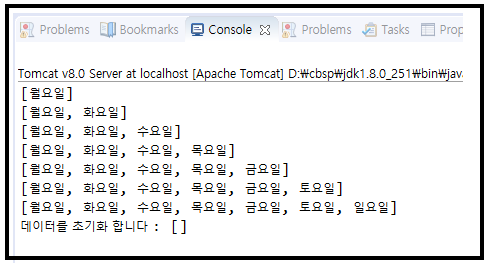 System.out.println("데이터를 초기화 합니다 : " + resultList);