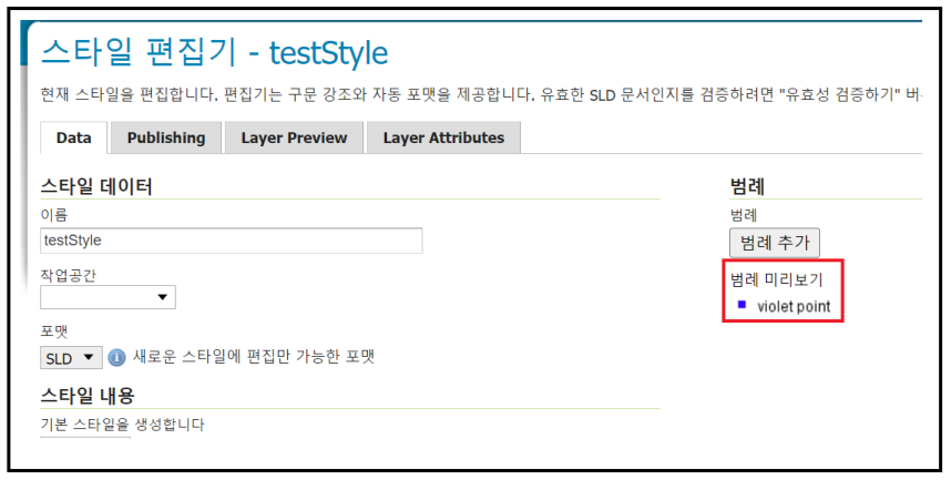 그리고 우측상단의 [범례 미리보기] 버튼을 누르면 현재 point 스타일이 어떤 상태인지 알 수 있다.