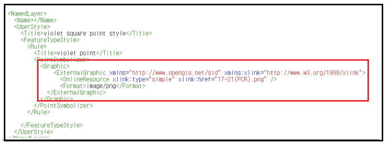 아. <ogc:PropertyName>는 이 스타일을 적용 할 레이어의 스키마(컬럼명)을 작성해줘야 한다.