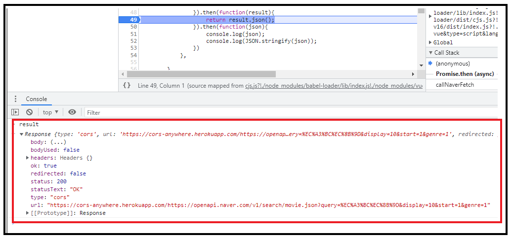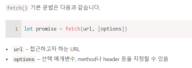 ES6 내장함수인 Fetch를 쓰고 있는 모양이었다. 서론은 여기까지 하고 바로 정리해보자.