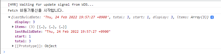 버튼을 클릭하니, fetch함수가 호출되며 비동기 통신이 이루어져, 데이터를 가지고 왔다.