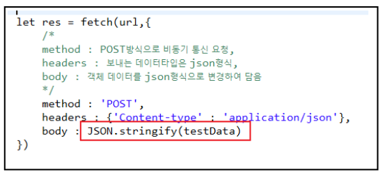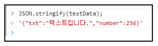 객체였던 testData를 stringify함수에 넣어 문자열로 변환 된 것 까지 확인 했는데