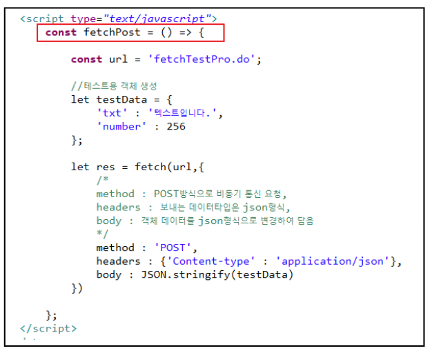이 코드는 그냥 테스트 한다고 <script>에 fetchPost하는 화살표 함수 하나 만들어 놓고 안에서