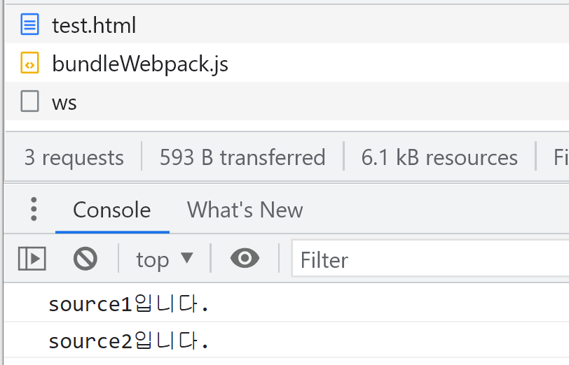 source1과 source2를 만들어 index.js에 import 시킨 뒤, 웹팩으로 번들링을 하여