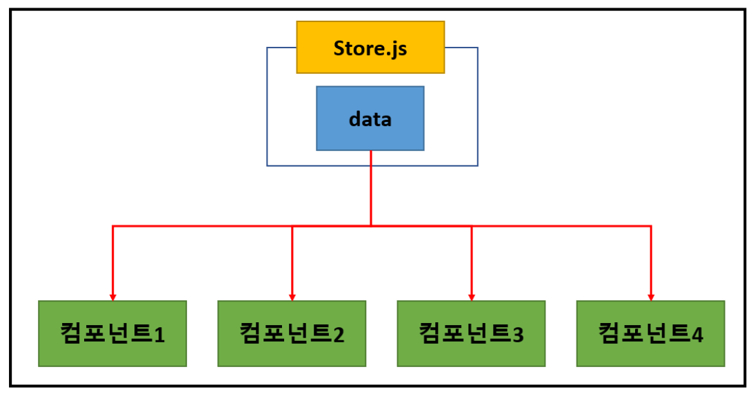 대충 이런 느낌으로 store.js ( 뒤에 나옴 )에 선언한 state의 데이터에 각 컴포넌트들이 접근해서 데이터를