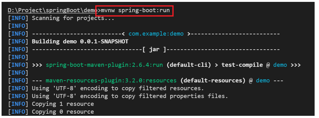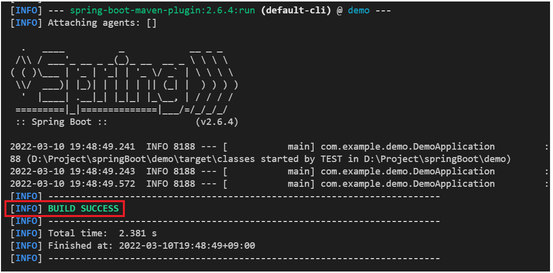 - 윈도우 : mvnw spring-boot:run