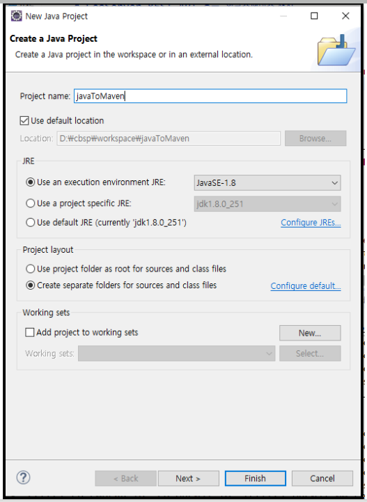 기존에 만들어 놓은 프로젝트의 소스가 아까워서 새로 메이븐 프로젝트를 만들기 힘들다면,