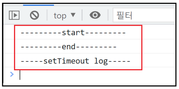 콘솔에 보이는 것처럼 동기처리가 안되고, end가 먼저 찍히고, setTimeout이 나중에 찍힌 것을 확인 할 수 있다..