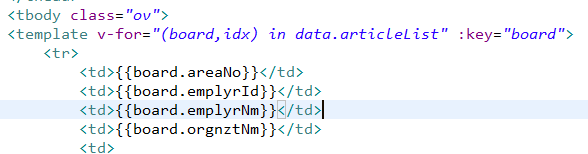 위에 v-for을 이용해 리스트를 출력하는 <template>에 :key="board"를 설정해 놓았다.