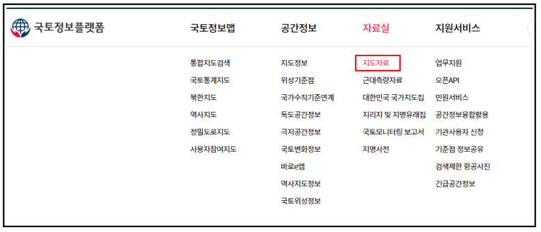 국토정보플랫폼에 접속하여 자료실로 가보자.