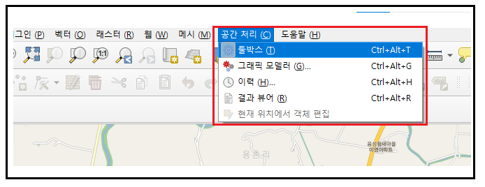 공간정보 작업을 처리할 때 공간처리 메뉴를 통해 툴박스를 켜야 하는데,