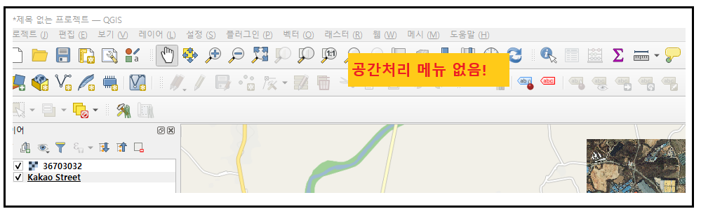메뉴에 공간처리가 보이지 않아, 툴박스를 실행하지 못하는 문제가 생길 수 있다.