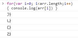이게 평범하게 배열안에 있는 값들을 추출하는 방법이지만 javascript에서는 forEach라는 내장함수를 제공한다.