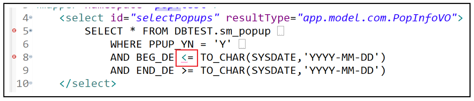 마이바티스를 사용하면서 값을 비교하다 보면 부등호를 쓰게 되는데, 그럴 때 문법오류가 뜰 때가 있다.