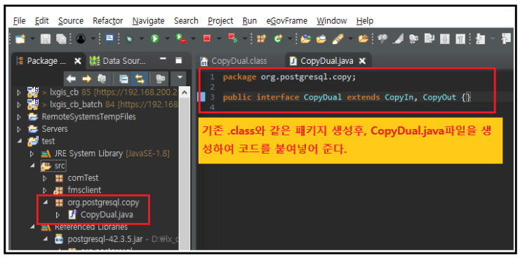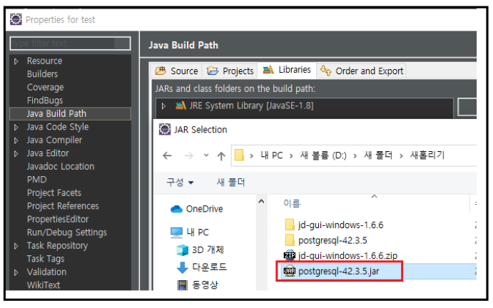 기존에 있던 postgresql.jar파일 삭제후 새로 수정된 postgresql.jar파일을 추가해준다.