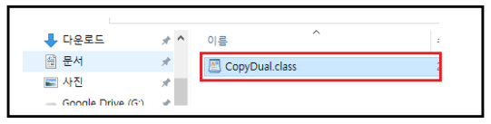 빌드하여 CopyDual.class파일을 생성해준다.