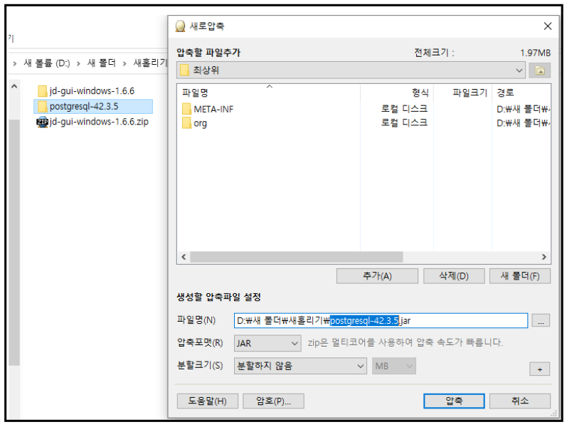 그래서 수정한 김에 정리해봄. ( 샘플파일은 postgresql.jar를 사용 )