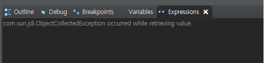 com.sun.jdi.objectcollectedexception occurred while retrieving value 에러가 안뜬다.