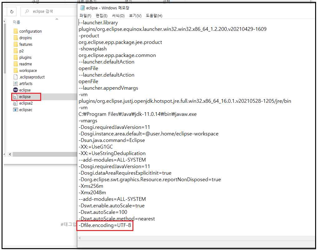 해결방법은 의외로 간단하다. 아래 코드를 eclipse.ini에 붙여 넣어주면 된다.