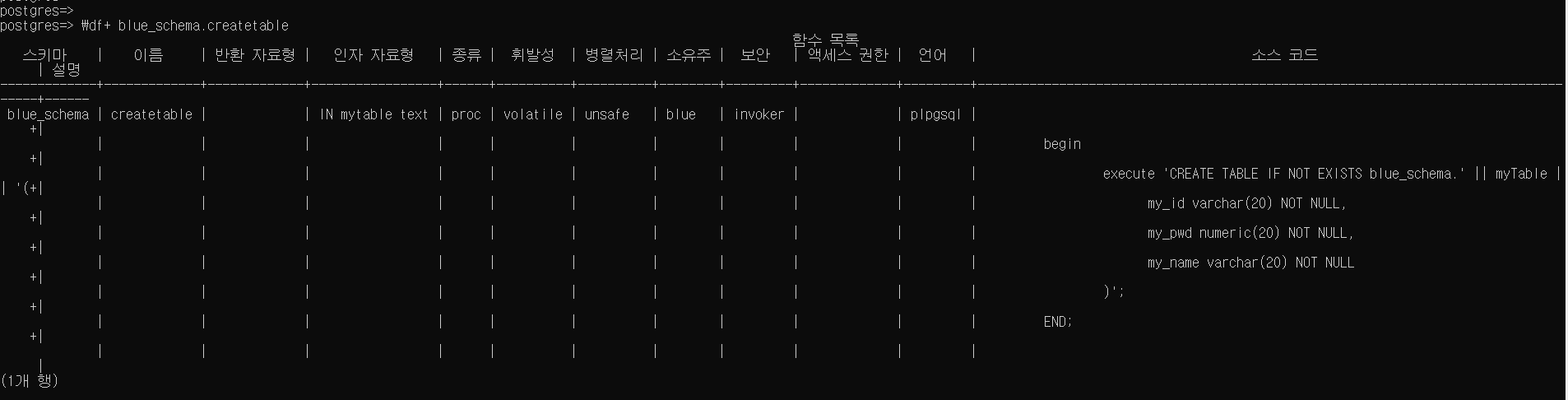 더 깔끔하고 함수에 내한 내용을 자세히 보고 싶다면 \df+ 명령어를 쓰면 더 낫지 않을까 싶다.
