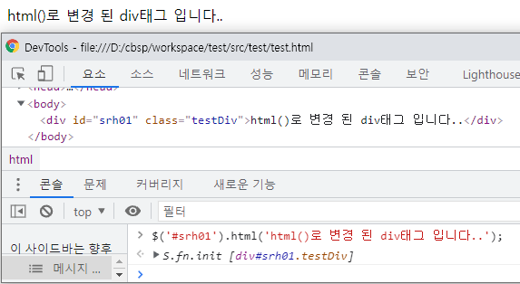 .text와 다른 점은 html 코드를 변경하는 것도 가능하다는 것이다.