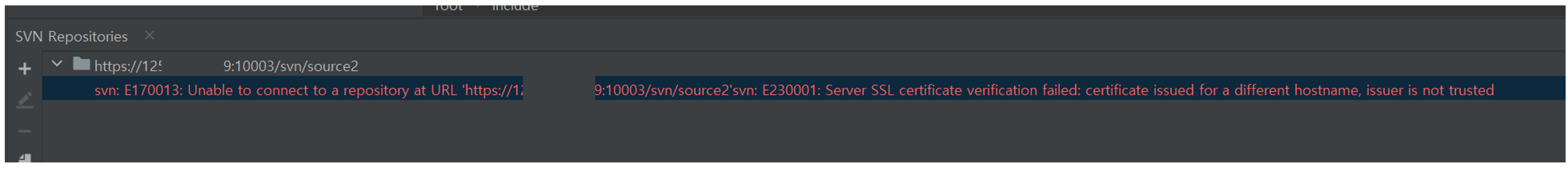 svn: E170013: Unable to connect to a repository at URL svn: E230001: Server SSL certificate verification failed: certificate issued for a different hostname, issuer is not trusted
