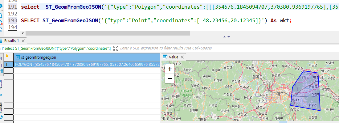 ST_GeomFromGeoJSON 사용방법