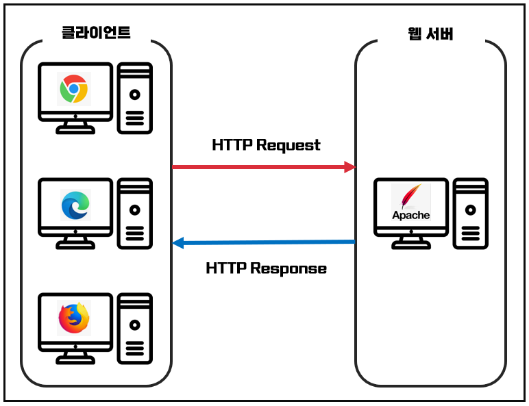 클라이언트는 일반적으로 크롬, 엣지, 파이어폭스 같은 웹브라우저다.