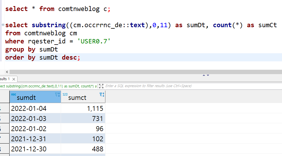 | [Postgres] 월별/주별/일별 통계 (1) (0) | 2022.01.08 |