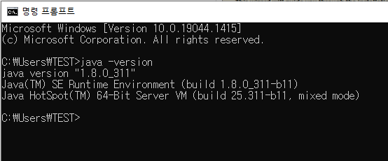 그럼 이제 CMD창을 열어 다음 명령어를 입력해주면 JAVA가 정상적으로 설치 된 것을 확인할 수 있다.