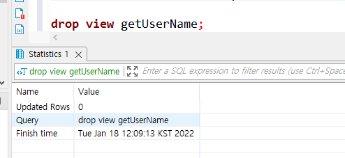 뷰테이블을 삭제하는 건 더 간단하다. 그냥 뷰테이블 앞에 DROP만 붙여주면 된다.