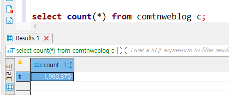 데이터가 약 196만개나 있다... 그리고 아래와 같이 해당 사용자의 이름을 가진 테이블이 있다고 하자.