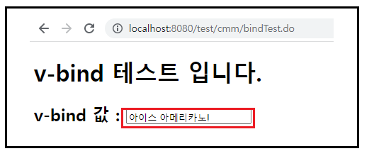 위와 같이 변경 되었다. 주의할 점은 v-bind는 v-model과는 다르게 단방향 바인드이기 떄문에