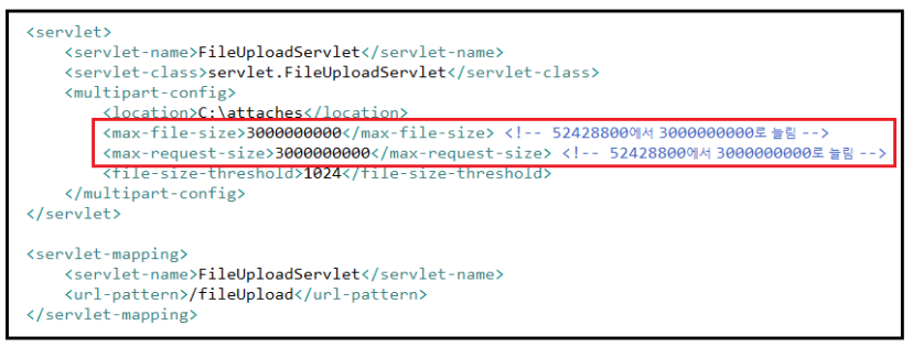 1. web.xml에서 <max-file-size>와 <max-request-size>의 사이즈를 늘리기