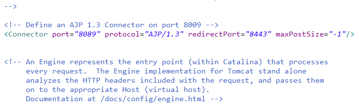나는 port를 8080으로 접근하기 때문에 port가 8080인 <Connector>에 maxPostSizs를 설정해줘야 하는데