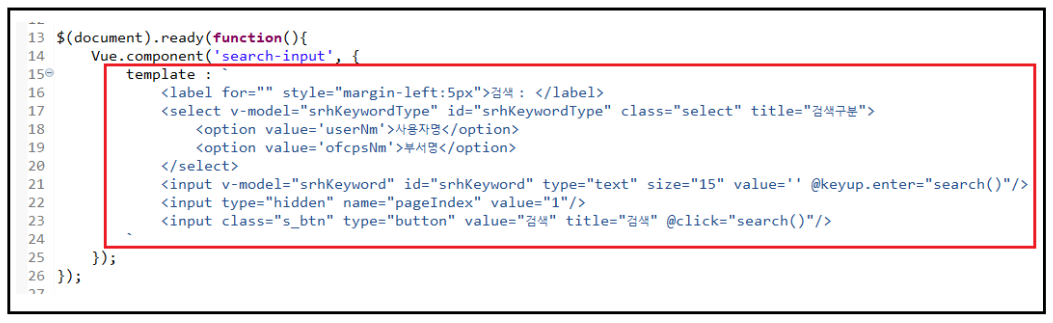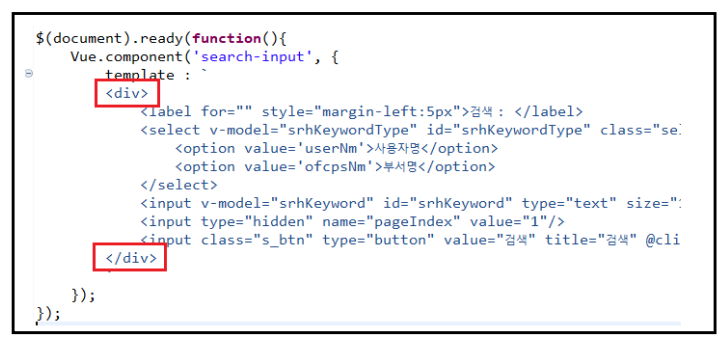 오늘 뷰 컴포넌트를 이용해서 검색기능을 만들고 있는데 다음과 같은데 에러가 떴다.