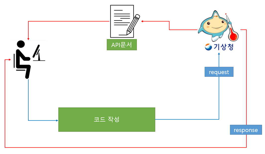 개발자 같은 경우는 직접 해당 API를 코드로 만들어 요청하게 되는데.. 위 예시의 그림은 그냥 이런 느낌이다~ 라는 것을