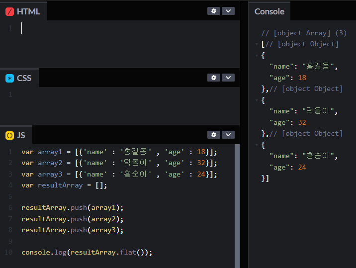 그냥 push나 concat을 이용하여 합쳐주니 다음과 같은 모습이 되었다..