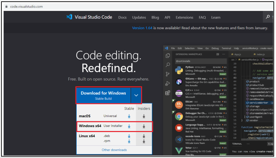 비주얼 스튜디오 코드 공식 홈페이지로 접속