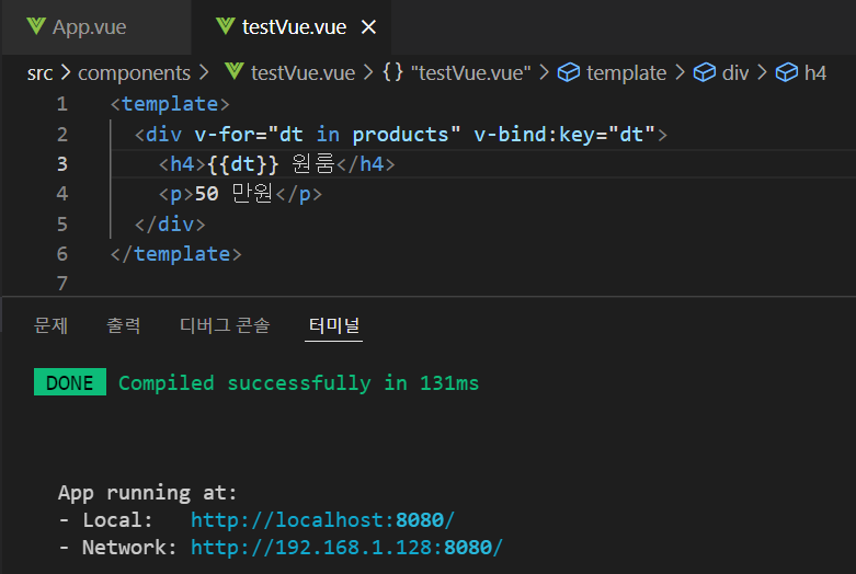 v-for문을 입력한 태그에 v-bind:key만 넣어주면 된다.