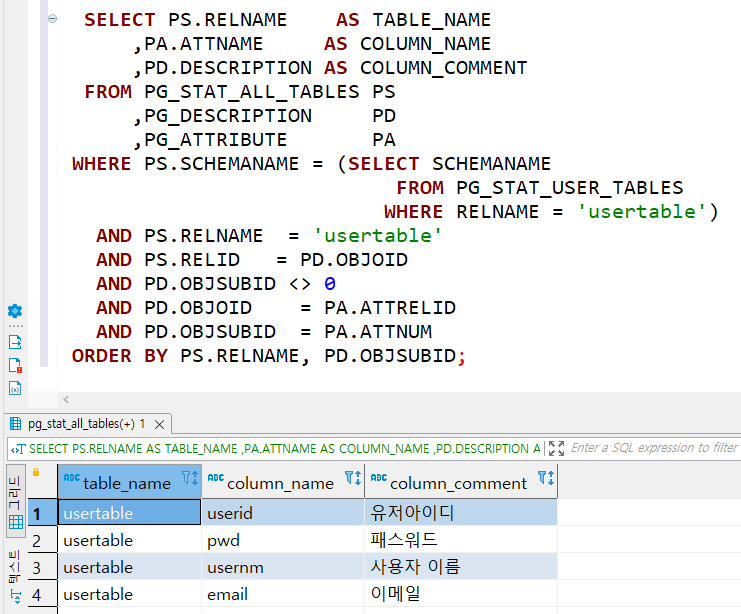 6. 컬럼 코멘트 목록 조회