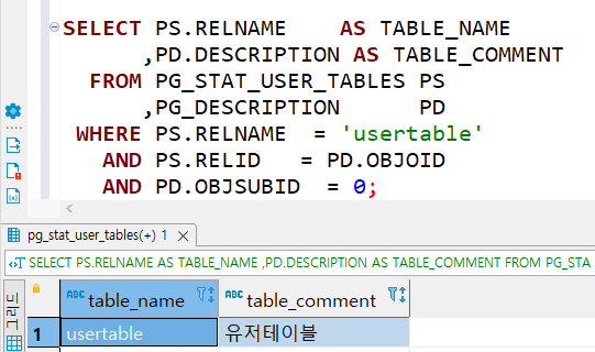 AND PS.RELNAME = [테이블명]