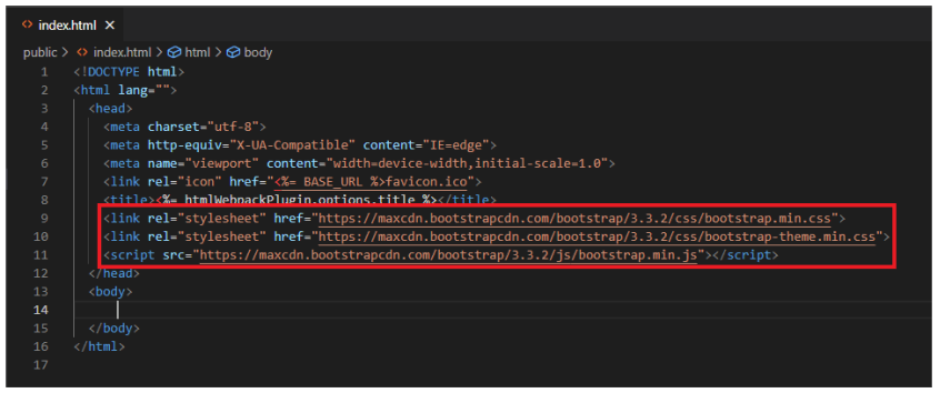 그럼 해당 CDN 3개가 복사가 될텐데, 이것을 HTML파일에 그대로 갖다붙여주면 된다.