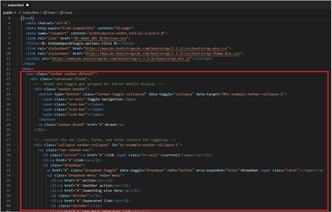 이제 부트스트랩 홈페이지에서 원하는 태그들을 갖다 붙이기만 하면 된다.
